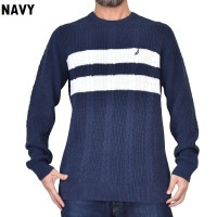トップ > NAUTICA (ノーティカ) > 長袖トップス > 大きいサイズ メンズ NAUTICA ノーティカ ノーチカ クルーネック ケーブル セーター ニット ワンポイント ボーダー XL XXL XXXL
