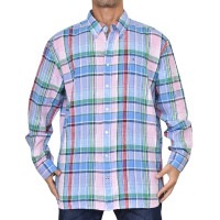 トップ > TOMMY HILFIGER (トミーフィルフィガー) > 長袖トップス > 大きいサイズメンズ TOMMY HILFIGER トミーヒルフィガー リネン長袖シャツ チェック柄 ワンポイント ボタンダウン 麻混 REGULAR FIT XXL